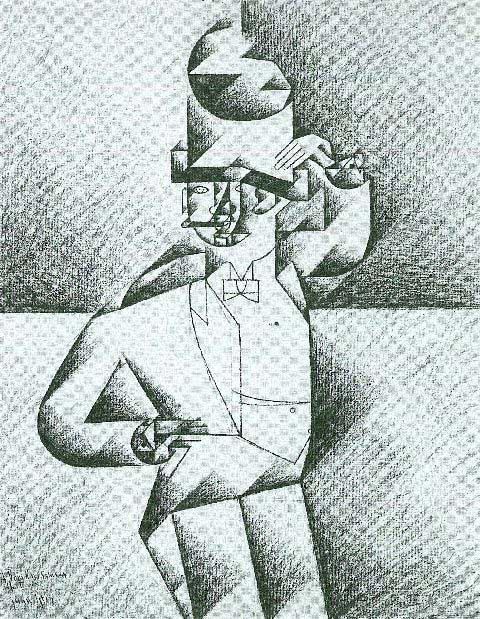 Artist: Juan Gris - Title: Man In Cafe - Medium: Fine Art Reproduction Giclee on Canvas - Image Size: Approximately 20 inches x 15.5 inches - Unframed on Unstretched Canvas - Biography: José Victoriano González-Pérez, better known as Juan Gris, was a Spanish painter born in Madrid who lived and worked in France for most of his active period. Closely connected to the innovative artistic genre Cubism, his works are among the movement's most distinctive.