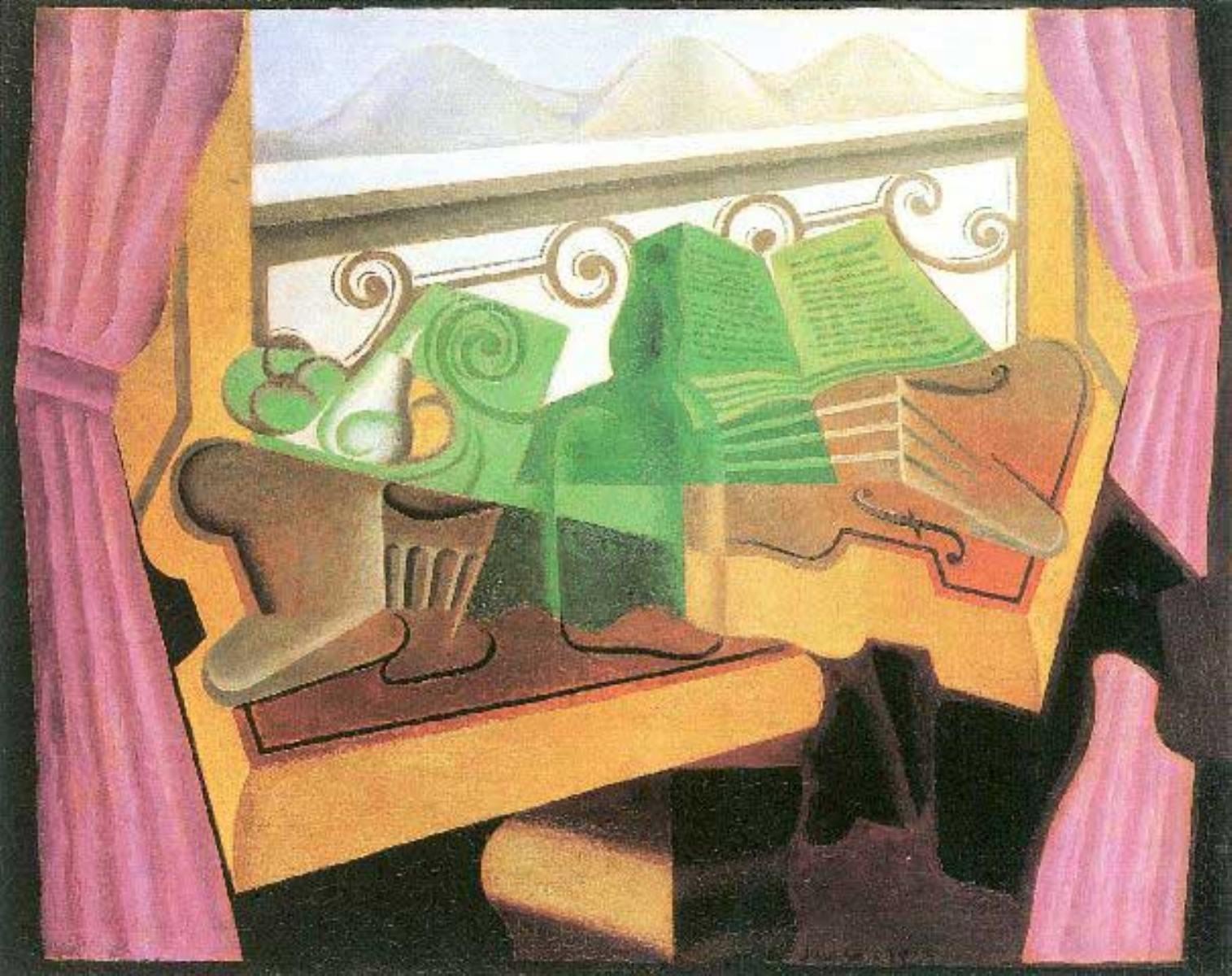 Artist: Juan Gris - Title: Open Windows With Hills - Medium: Fine Art Reproduction Giclee on Canvas - Image Size: Approximately 15.75 inches x 20 inches - Unframed on Unstretched Canvas - Biography: José Victoriano González-Pérez, better known as Juan Gris, was a Spanish painter born in Madrid who lived and worked in France for most of his active period. Closely connected to the innovative artistic genre Cubism, his works are among the movement's most distinctive.