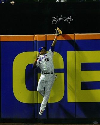 Juan Lagares hit his first major league home run on May 19 2013. Lagares began the 2014 season with the Mets as their starting center fielder. At the end of the season he improved his hitting tremendously over the past season, increasing his average by nearly 40 points, from .242 to .281. On November 4, 2014 it was announced that Juan had won his first Gold Glove Award. He was the third outfielder in franchise history to win a Gold Glove award. On April 2, 2015, Lagares and the Mets agreed to a four-year extension worth $23 million which will run from 2016 through 2019. The Mets have a $9.5 million option for 2020, with a $500,000 buyout. Juan Lagares has hand signed this New York Mets 16x20 Photo #12. Leaf Authentics Hologram and Certificate of Authenticity from Athlon Sports.