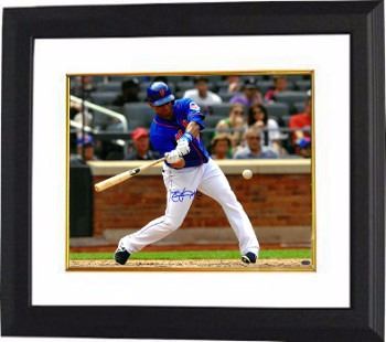 Juan Lagares hit his first major league home run on May 19 2013. Lagares began the 2014 season with the Mets as their starting center fielder. At the end of the season he improved his hitting tremendously over the past season, increasing his average by nearly 40 points, from .242 to .281. On November 4, 2014 it was announced that Juan had won his first Gold Glove Award. He was the third outfielder in franchise history to win a Gold Glove award. On April 2, 2015, Lagares and the Mets agreed to a four-year extension worth $23 million which will run from 2016 through 2019. The Mets have a $9.5 million option for 2020, with a $500,000 buyout. Juan Lagares has hand signed this New York Mets 16x20 Photo #12. Leaf Authentics Hologram and Certificate of Authenticity from Athlon Sports. Custom White Mat and Premium Black Color Framed as shown.