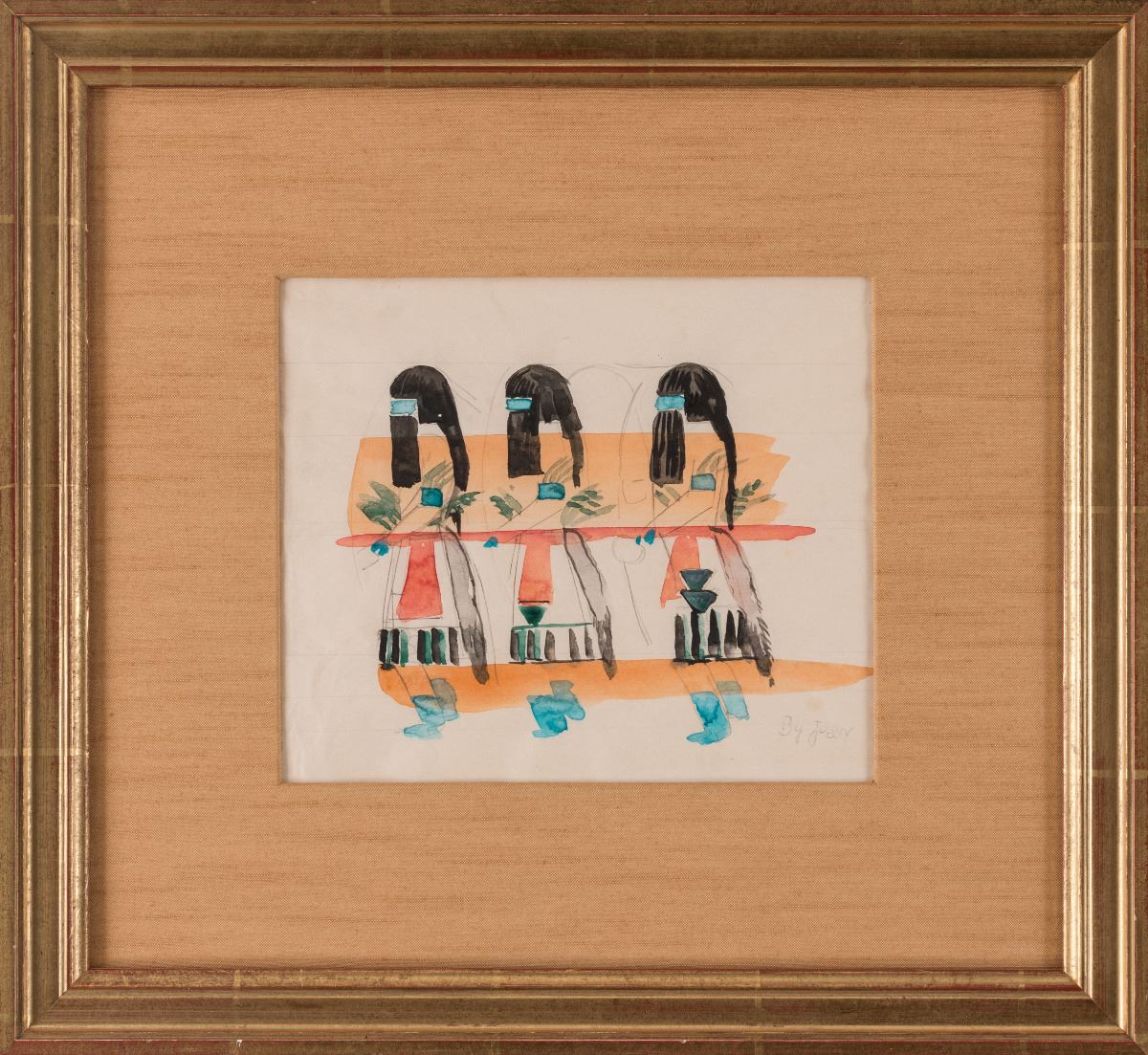 Juan Mirabal (1903-1970). Line of Dancers. 6 ¼" x 7 ¼" watercolor. Signed lower right.