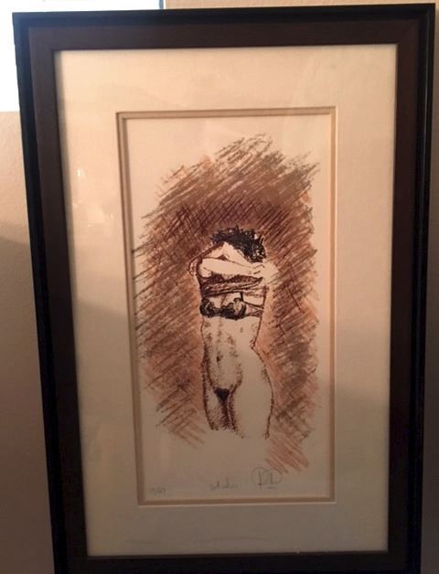 Hand pulled etching of the artis's model undressing in his studio