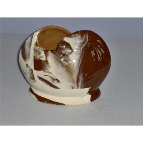 This mesmerizing Juanita Ware brown and white swirl pottery vase is a find! It has a clamshell design with complete glazing and presents a marbleized swirl of brown and cream-white clays.<p>
