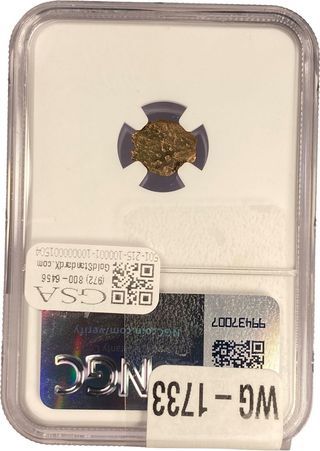 e. Coins sold referencing a third-party grading service are sold “AS IS” without any express or implied warranty, except for a guarantee by GSA that they are genuine. Removal or alteration of the holder, voids all of Bidder’s claims concerning that Product. Certain warranties may be available from the grading services and Bidders are referred to them for further details: Numismatic Guaranty Corporation (NGC), PO Box 4776, Sarasota, FL 34230, www.ngccoin.com/services/writtenguarantee.asp; Professional Coin Grading Services (PCGS), PO Box 9458, Newport Beach, CA 92658, www.pcgs.com/guarantee.html; ANACS, 6555 S. Kenton St., Ste. 303, Englewood, CO 80111; and Independent Coin Grading Co. (ICG), 7901 East Bellview, Ave., Suite 50, Englewood, CO 80111.