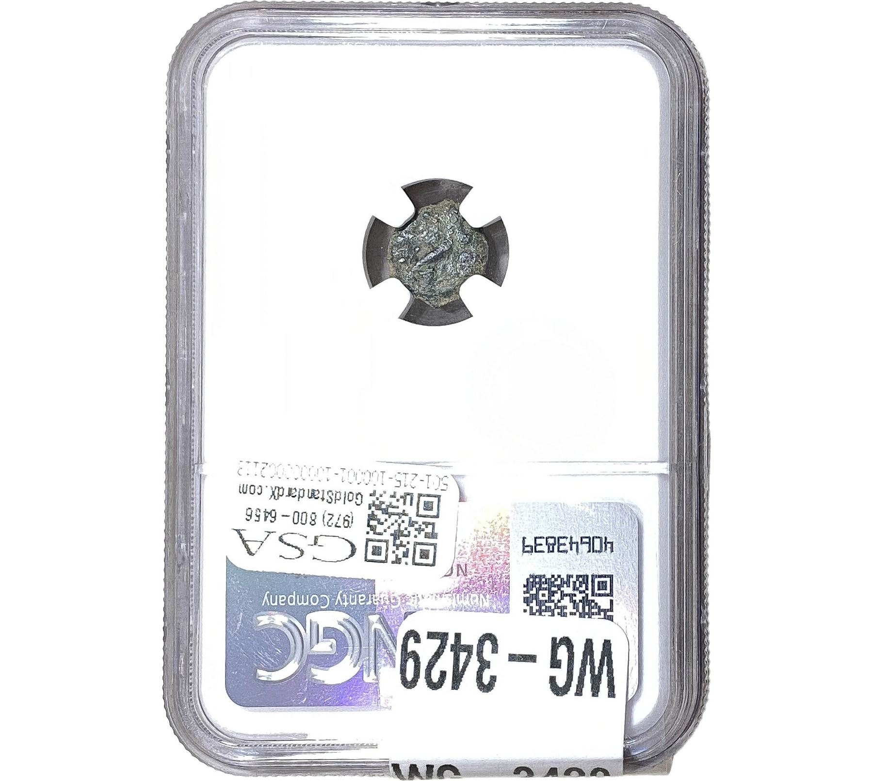 e. Coins sold referencing a third-party grading service are sold “AS IS” without any express or implied warranty, except for a guarantee by GSA that they are genuine. Removal or alteration of the holder, voids all of Bidder’s claims concerning that Product. Certain warranties may be available from the grading services and Bidders are referred to them for further details: Numismatic Guaranty Corporation (NGC), PO Box 4776, Sarasota, FL 34230, www.ngccoin.com/services/writtenguarantee.asp; Professional Coin Grading Services (PCGS), PO Box 9458, Newport Beach, CA 92658, www.pcgs.com/guarantee.html; ANACS, 6555 S. Kenton St., Ste. 303, Englewood, CO 80111; and Independent Coin Grading Co. (ICG), 7901 East Bellview, Ave., Suite 50, Englewood, CO 80111.
