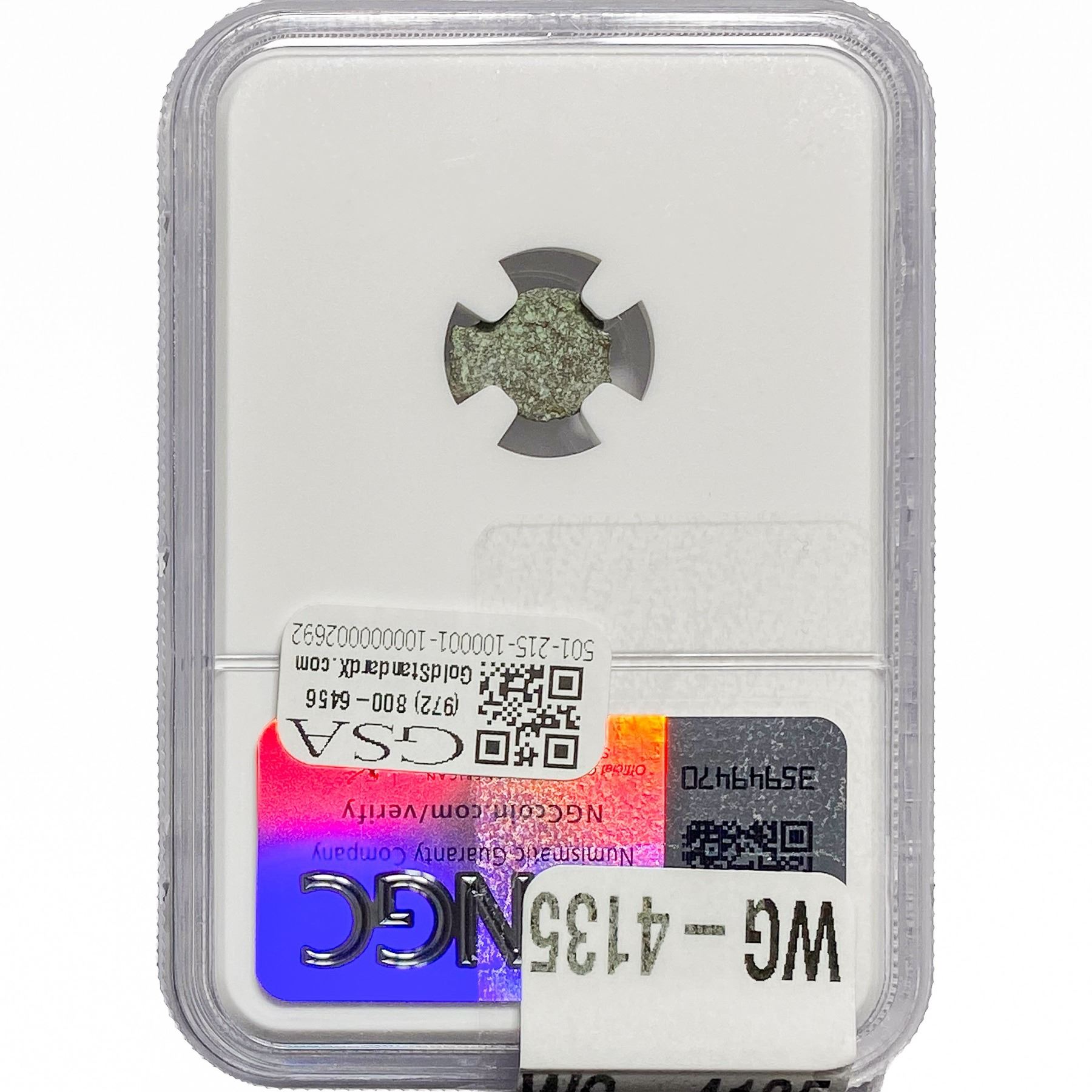 e. Coins sold referencing a third-party grading service are sold “AS IS” without any express or implied warranty, except for a guarantee by GSA that they are genuine. Removal or alteration of the holder, voids all of Bidder’s claims concerning that Product. Certain warranties may be available from the grading services and Bidders are referred to them for further details: Numismatic Guaranty Corporation (NGC), PO Box 4776, Sarasota, FL 34230, www.ngccoin.com/services/writtenguarantee.asp; Professional Coin Grading Services (PCGS), PO Box 9458, Newport Beach, CA 92658, www.pcgs.com/guarantee.html; ANACS, 6555 S. Kenton St., Ste. 303, Englewood, CO 80111; and Independent Coin Grading Co. (ICG), 7901 East Bellview, Ave., Suite 50, Englewood, CO 80111.