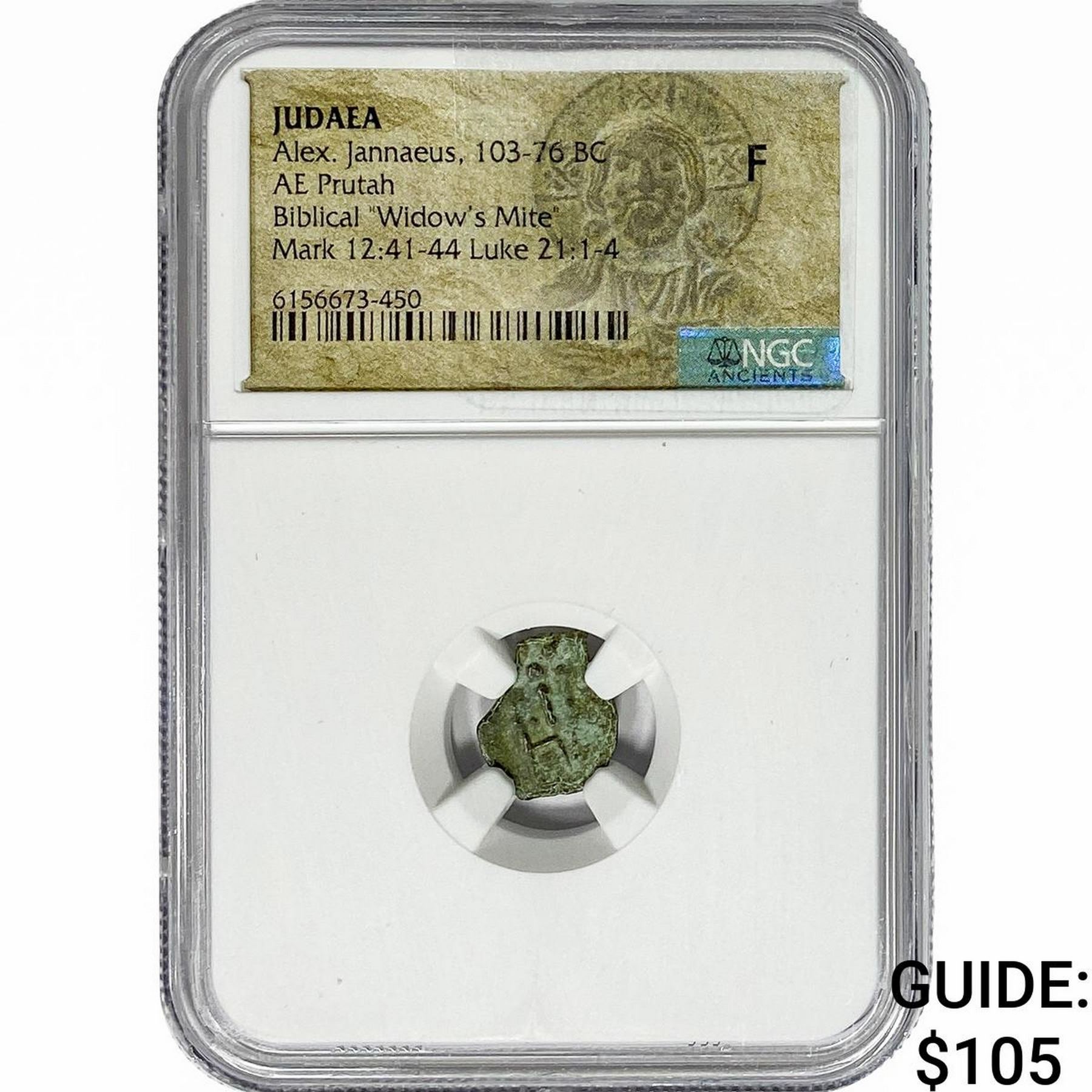 Judaea Alex. Jannaeus, 103-76 BC Bronze Prutah NGC F