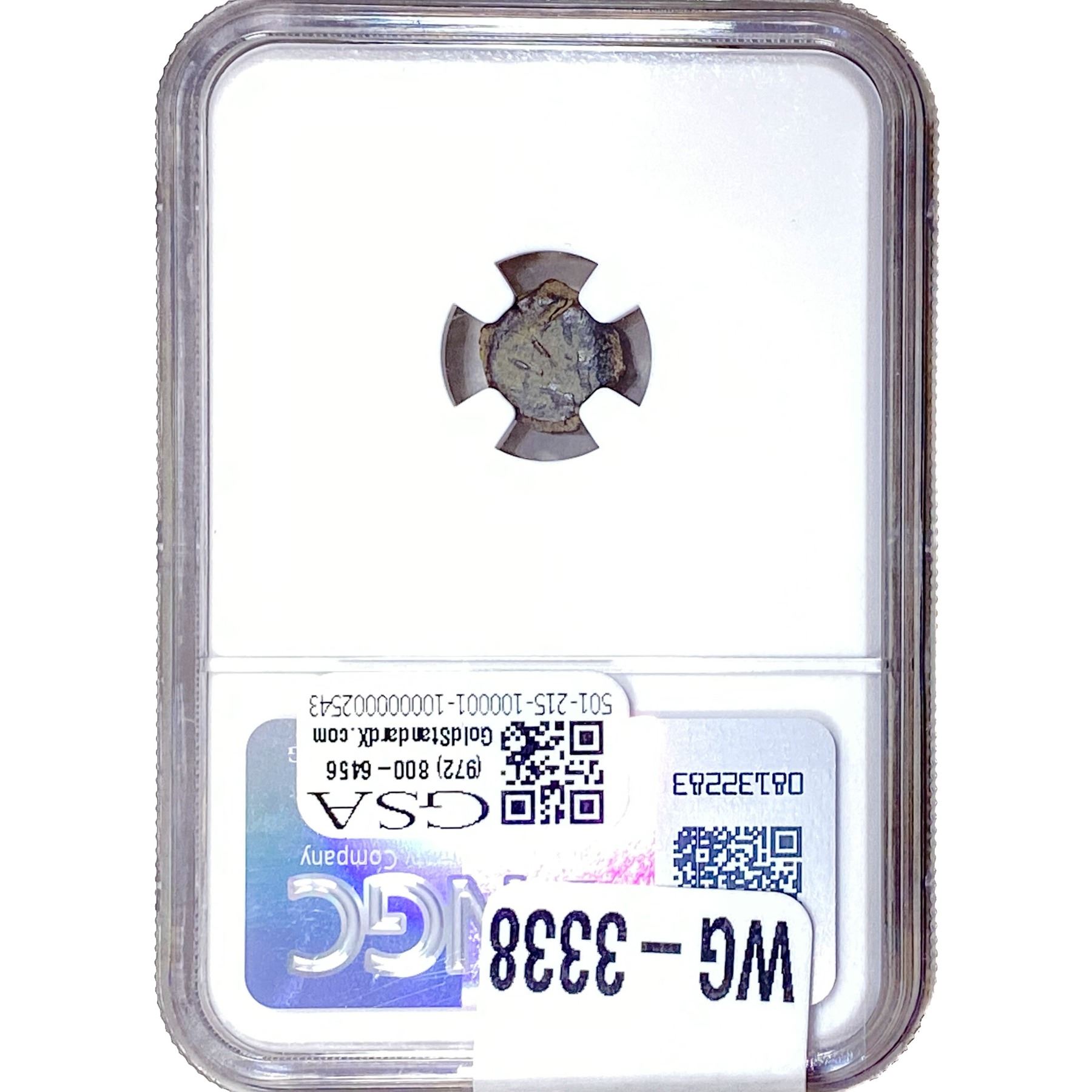 e. Coins sold referencing a third-party grading service are sold “AS IS” without any express or implied warranty, except for a guarantee by GSA that they are genuine. Removal or alteration of the holder, voids all of Bidder’s claims concerning that Product. Certain warranties may be available from the grading services and Bidders are referred to them for further details: Numismatic Guaranty Corporation (NGC), PO Box 4776, Sarasota, FL 34230, www.ngccoin.com/services/writtenguarantee.asp; Professional Coin Grading Services (PCGS), PO Box 9458, Newport Beach, CA 92658, www.pcgs.com/guarantee.html; ANACS, 6555 S. Kenton St., Ste. 303, Englewood, CO 80111; and Independent Coin Grading Co. (ICG), 7901 East Bellview, Ave., Suite 50, Englewood, CO 80111.