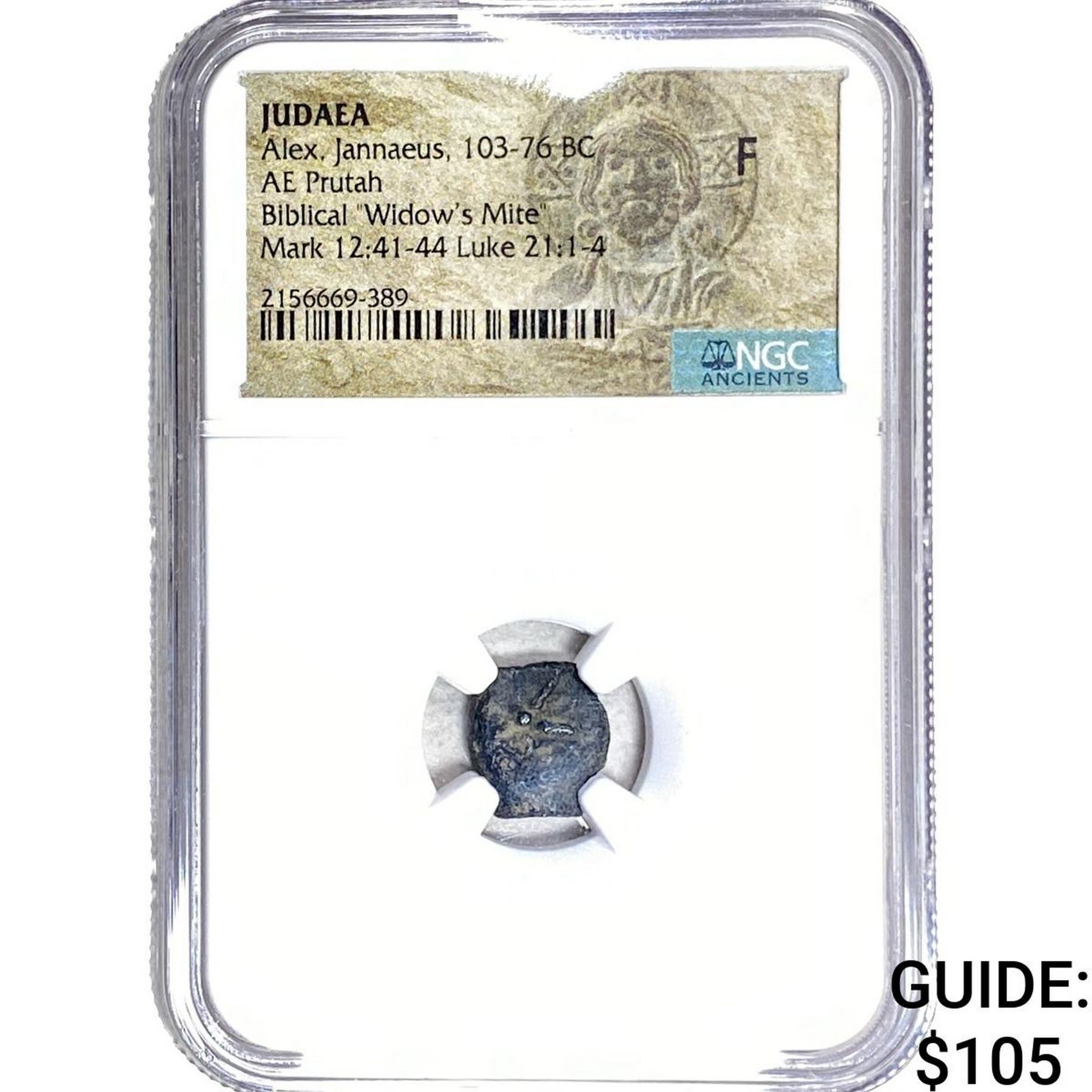 Judaea Alex, Jannaeus 103-76 BC Bronze Purtah NGC F