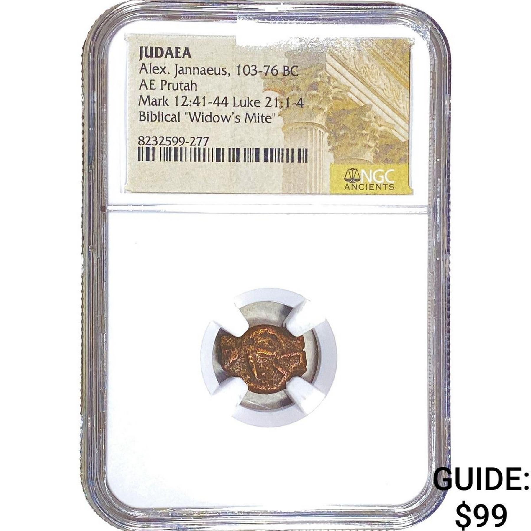 Judaea Alex, Jannaeus 103-76 BC Bronze Purtah NGC