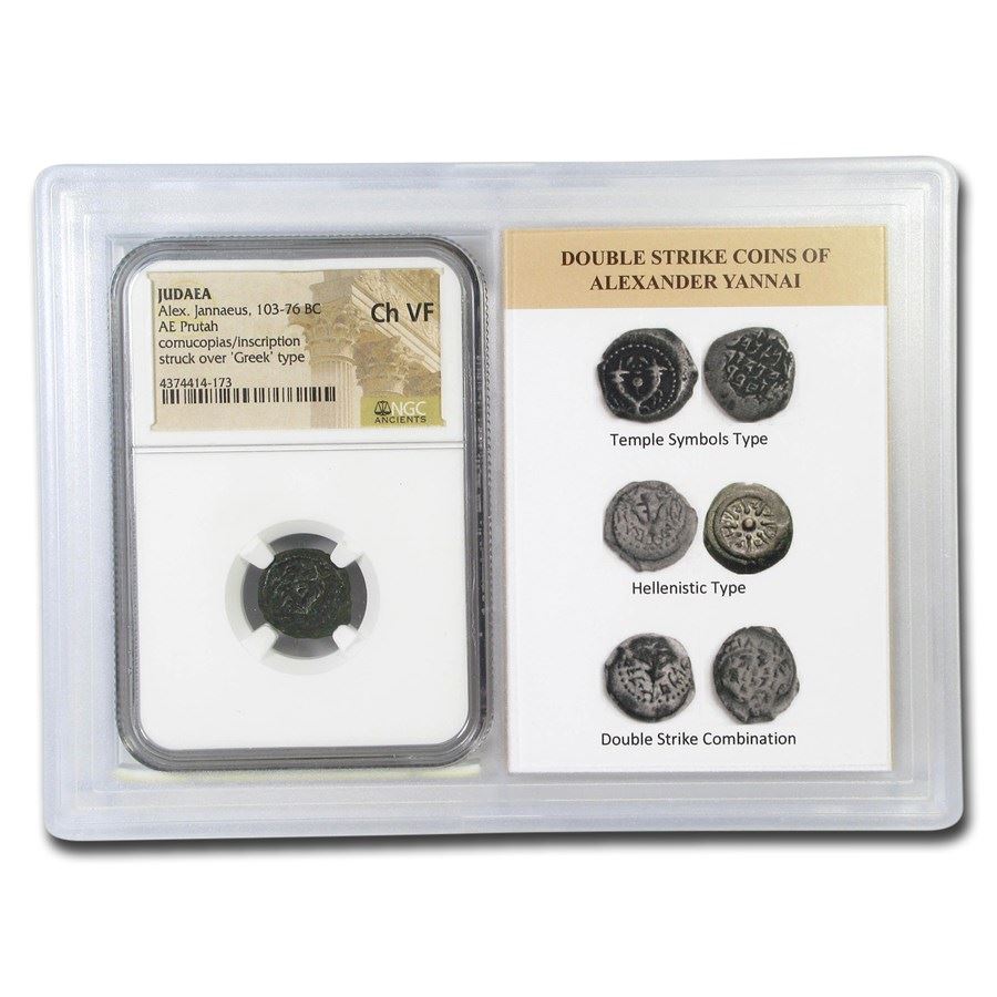 Judaea Alex. Jannaeus Widow's Mite Overstruck Ch VF NGC (Vault)
