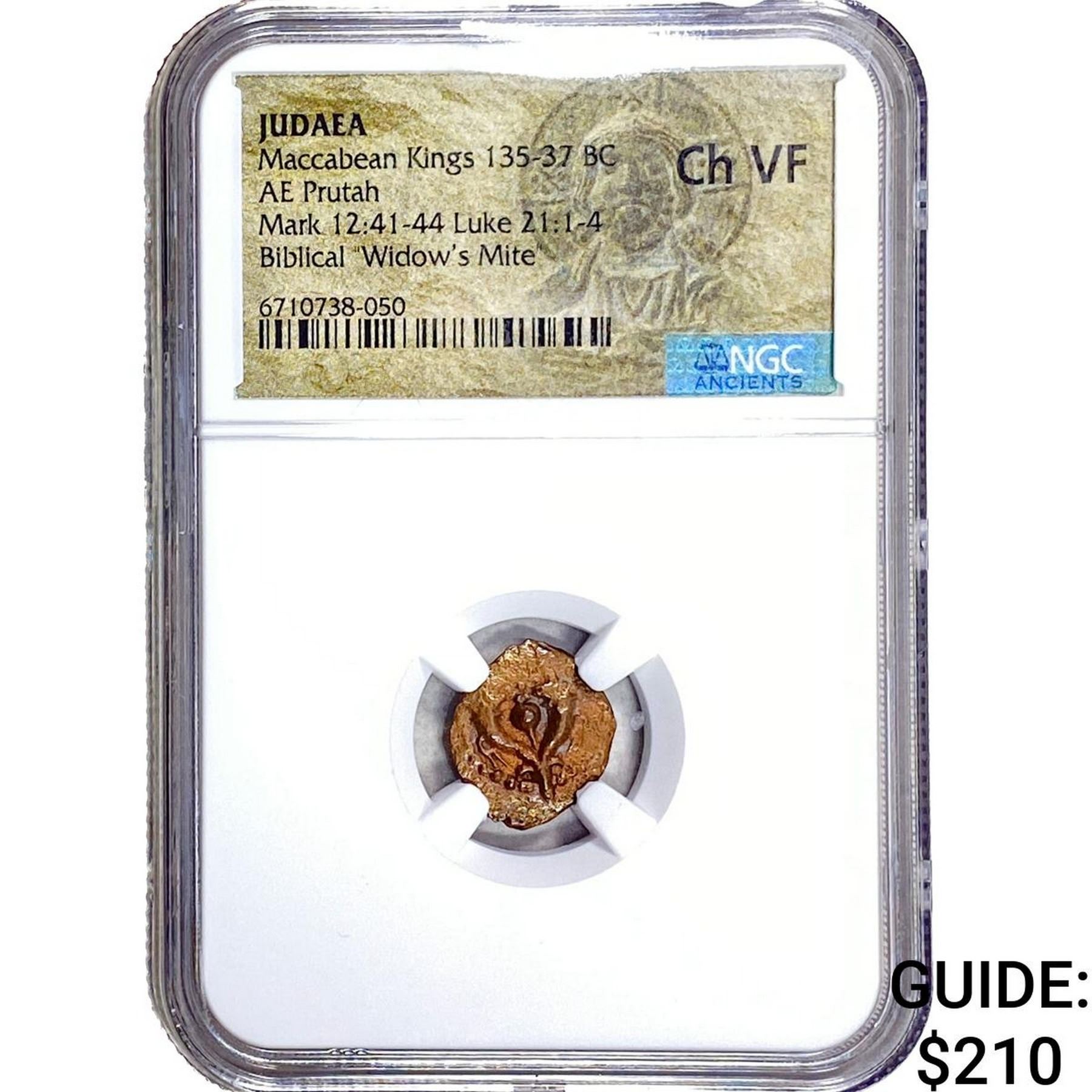Judaea Maccabean Kings 135-37 BC Bronze Prutah NGC Ch VF