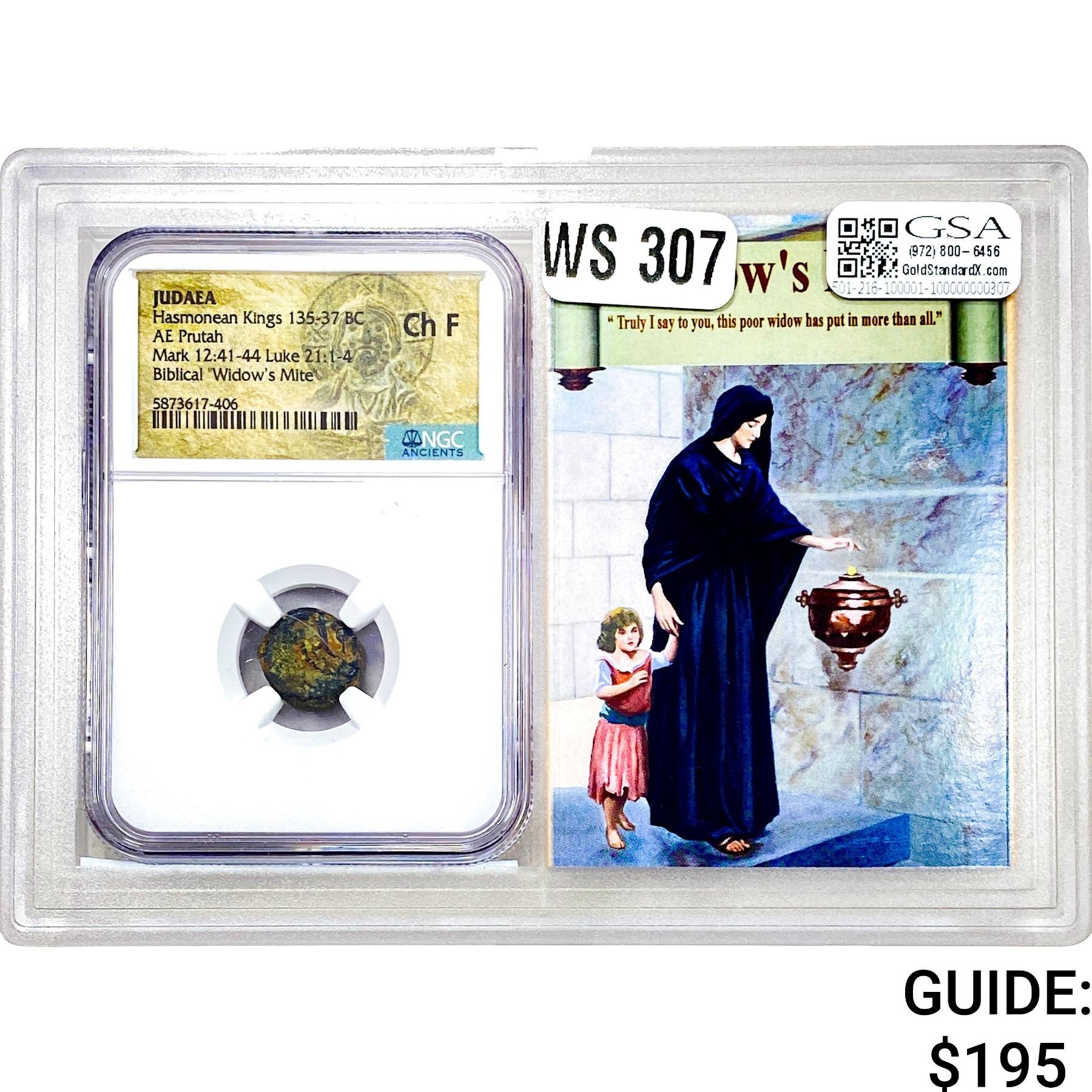 Judaea Widows Mite 135-37 BC AE Prutah NGC Ch F
