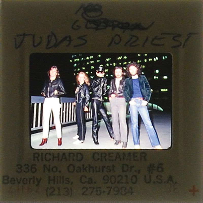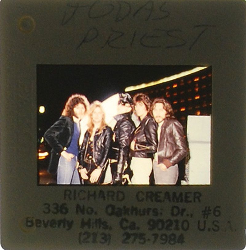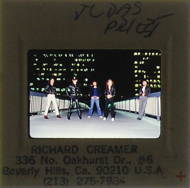 Three original unsigned color slides of the entire group, each image measuring 1.25 x 1 inside a 2 x 2 cardboard or plastic mount. Mounts bear ink and pencil notations, and stamps from the photographer, Richard Creamer. In overall fine condition. Provenance: Richard Creamer Estate. Creamer was a famous Rolling Stone photographer very active and well known in the 1970s Los Angeles Rock scene. The collection of Creamer photos offered in this auction were kept in his personal collection and several appeared in magazines.