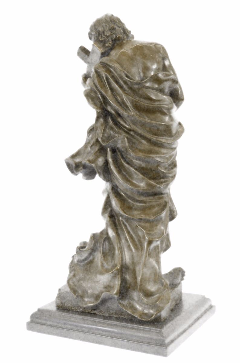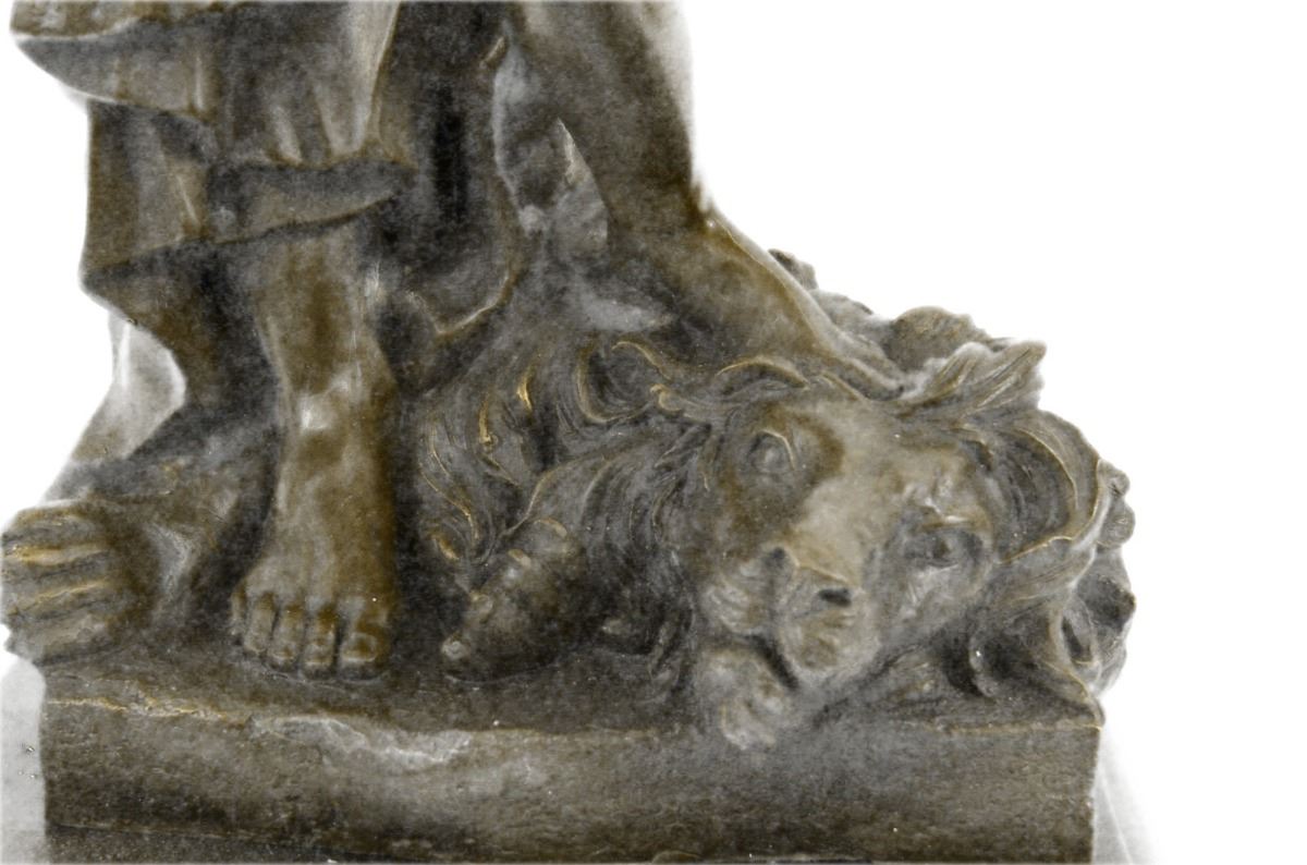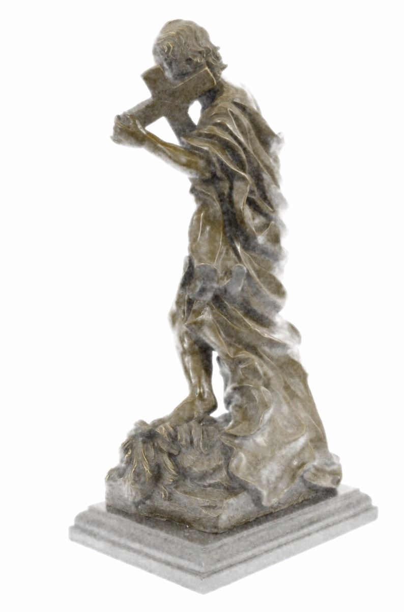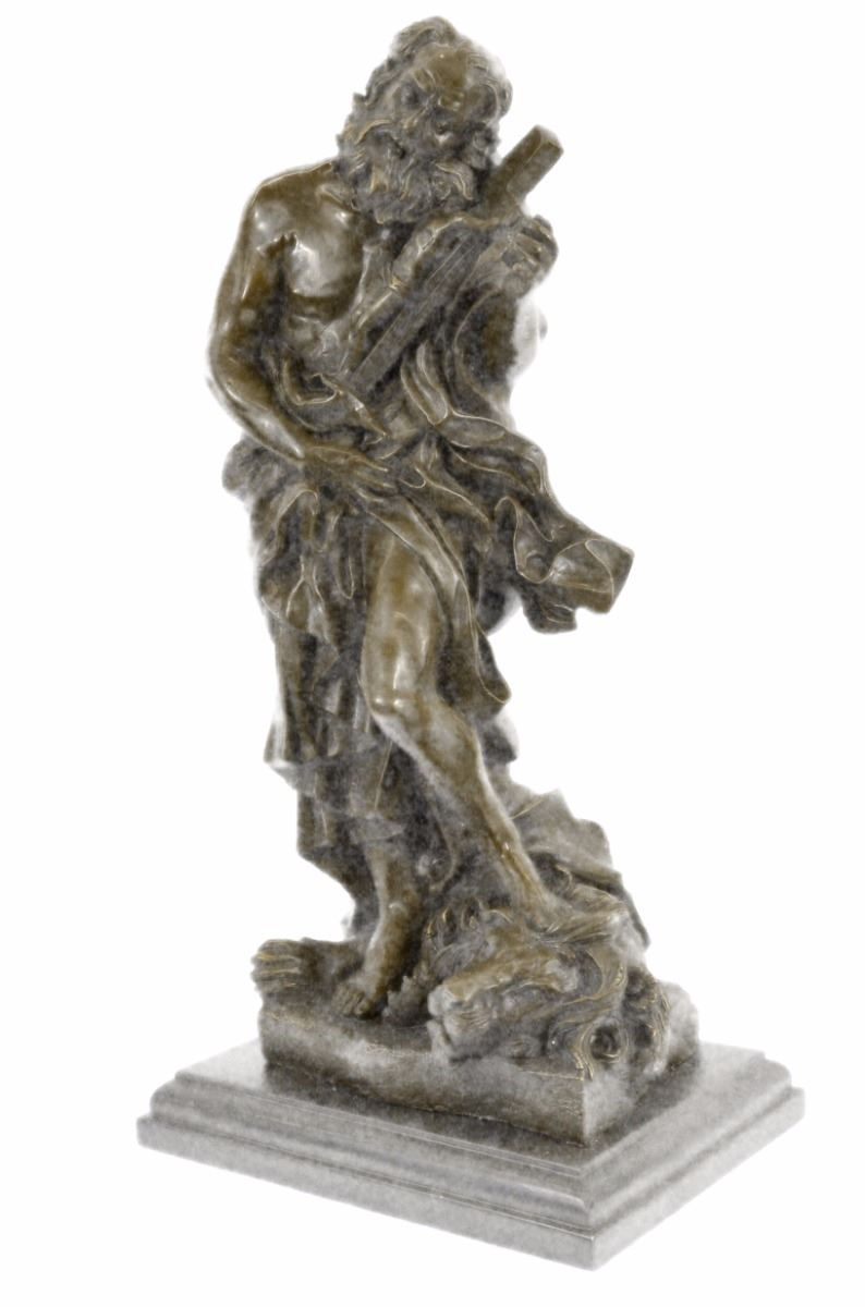 The Bronze Sculpture Contains Multiple Religious Meanings. Here We See Judas Iscariot, Who Was According To The New Testament, One Of The Twelve Disciples Of Jesus. He Is Notoriously Known For His Betrayal Of Jesus To The Hands Of The Chief Priests For 30 Pieces Of Silver. He Seen Walking In Wretchedness, Holding On To Remorse And The Symbol Of Jesus Crucified On The Cross Due To His Betrayal. His Foot Falls Heavy, Crushing The Lion's Head Which Represents Jesus Christ As The Lion From The Tribe Of Judah, Which Stems From The Root Of David And His Lineage. The Handmade Bronze Sculpture Was Cast Using The Archaic Method Of Lost-Wax Casting And Stained With A Brown Patina Finish For Preservation. It Is Mounted Upon A Black Marble Base With The European Bronze Finery Stamp Of Quality. Bronze Dimensions With Marble Base: Height 23 X Width 10 inches. Weight: 32 Lbs.