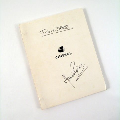 From the original Future-action movie "Judge Dredd" (1995) starring Sylvester Stallone, this is an original production script used by Maurice Roëves who played Chief Warden Miller. He has signed his script as well as included a signed photo and a Letter Of Provenience.