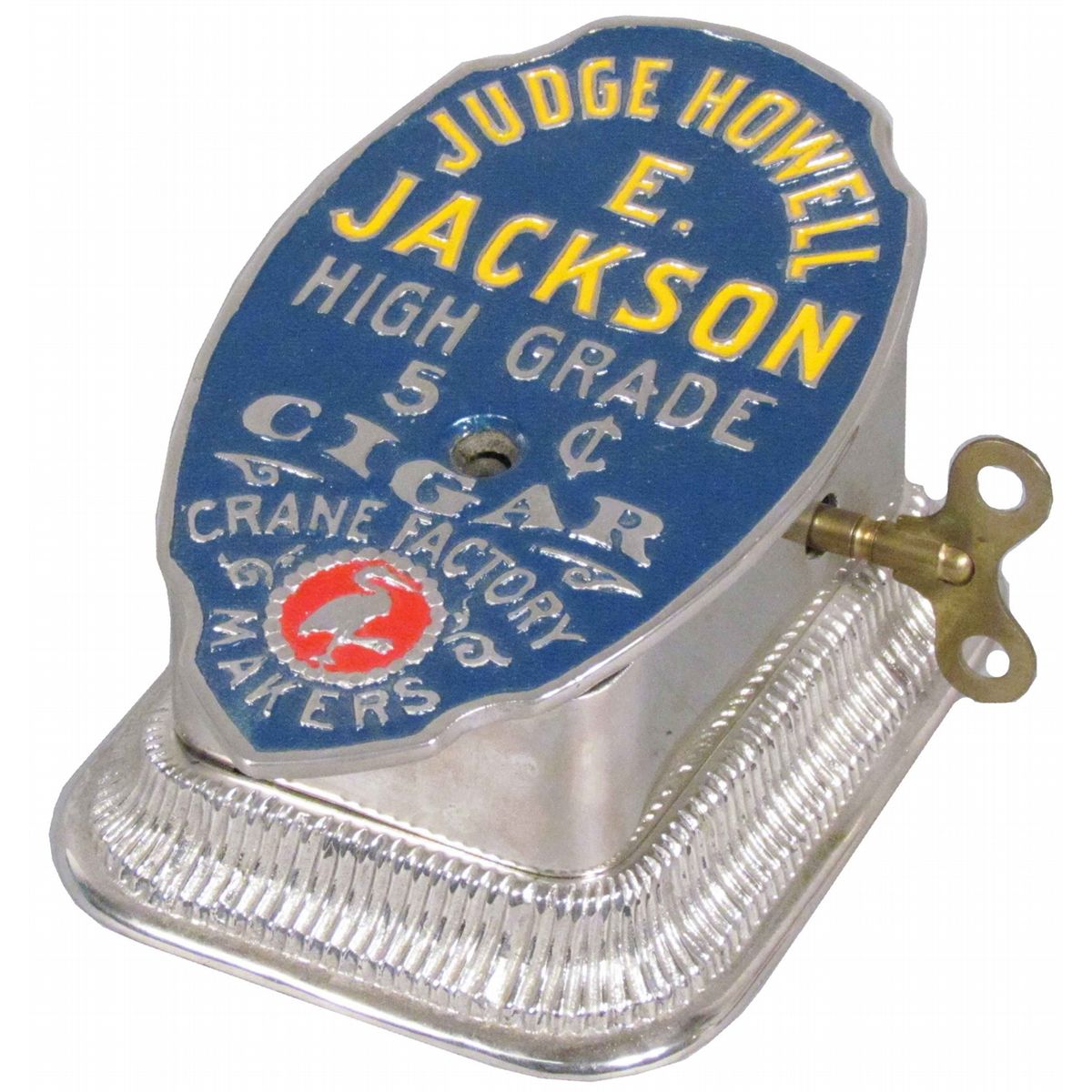 Judge Howell E. Jackson Cast Iron Cigar Tip Cutter. High Grade 5 Cent Cigar. Crane Factory Makers. Excellent restored condition. 4 3/4 X 3 1/2 X 6 1/4 inches.