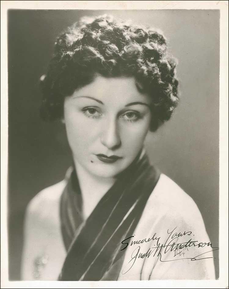 Early vintage matte-finish 7.5 x 9.5 portrait, signed in black fountain pen, “Sincerely yours, Judith Anderson.” In fine condition, with light border soiling. Pre-certified PSA/DNA and RRAuction COA.