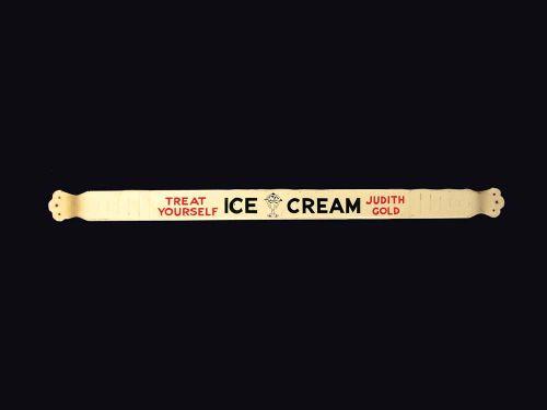 Judith Gold Ice Cream Tin Screen Door Push. Excellent condition. 35 inches long.
