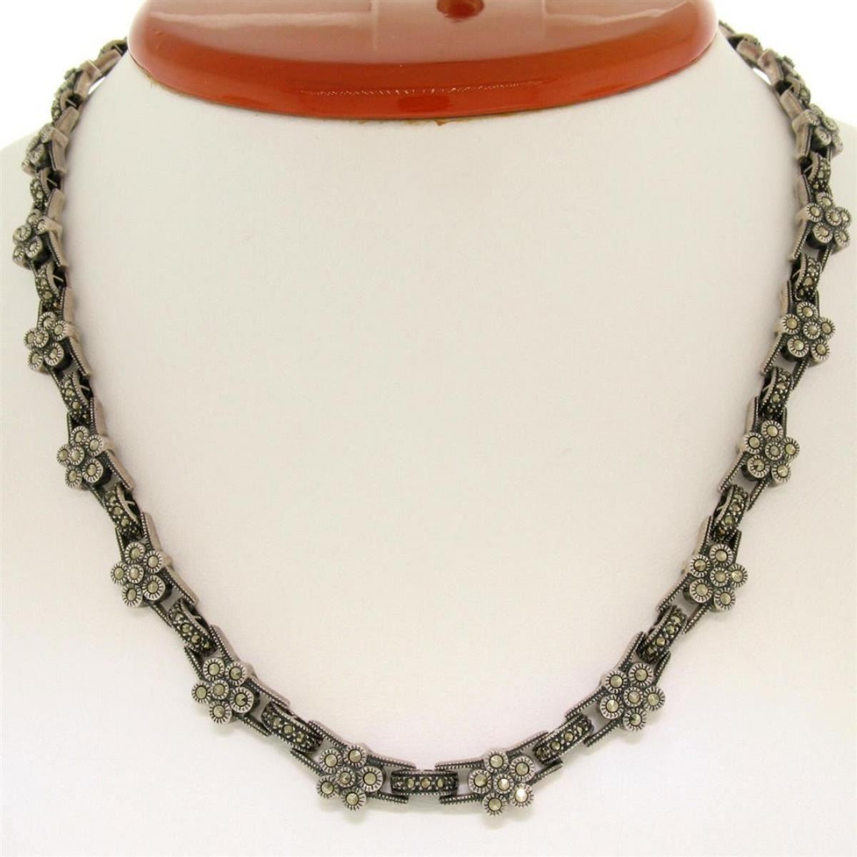 One Judith Jack Sterling Silver Marcasite Cluster Flower 16" Chain Necklace w/ Box. Item Details: Material: Solid .925 Sterling Silver, Weight: 45.43 Grams, Chain Type: Cluster Flower and Bar Link Chain, Chain Length: 16 Inches, Chain Width: 7.87mm, Chain Thickness: 4.54mm, Clasp: Box Clasp w/ Safety Latch, Signature(s): STERLING Condition: Like New w/ Original Pouch and Box!