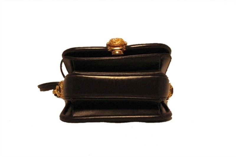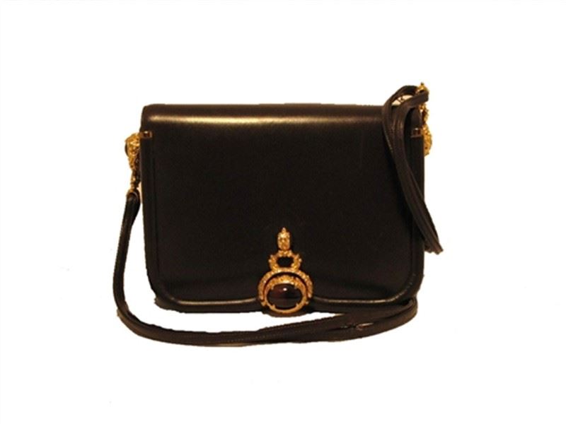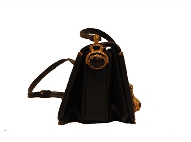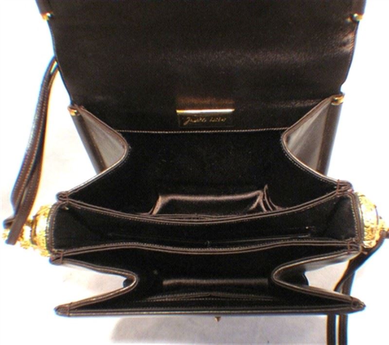 This exquisite Judith Leiber creation is in excellent condition. The exterior features gorgeous chocolate brown leather trimmed with gold hardware and a wonderful tigers eye stone on the front flap. The push button single flap style closure opens to a matching brown satin interior with three separate storage compartments. Two side slit pockets assist in the organization of your belongings inside. Carry this classic Leiber piece with you during the day or night. The possibilities are endless as this stunning mini shoulder bag effortlessly styles any look during any occasion. Purchase includes a dust cover. Measurements: 6''x4.5''x4'' 16'' shoulder drop #bags116