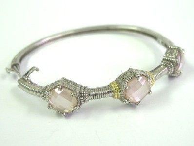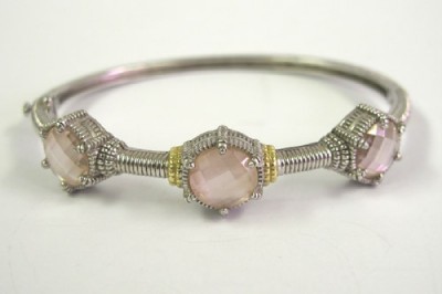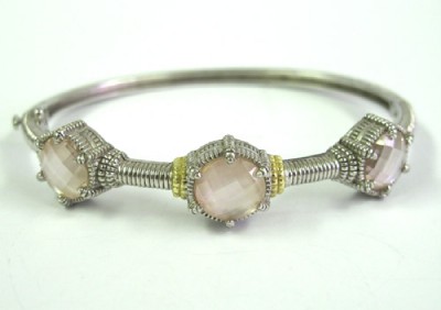Judith Ripka 18K Yellow Gold / Silver, Pink Quartz BangleThe total weight of Bangle is 21.1 grams.The measurements of Pink Quartz: 8 x 8 mmThe size of Bangle is 53 x 47 mm, the surface is 3 mm wide and 2 mm in thickness.
