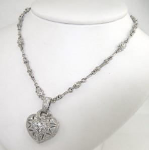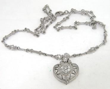 Judith Ripka 18K White Gold Diamond Necklace. The total weight of Necklace is 34.7 grams. The total weight of diamond: 1ct. approximately. G color VS2 clarity. The necklace is 4 mm thick. The size of pendant is 32 x 22 mm. The Necklace is 20" long