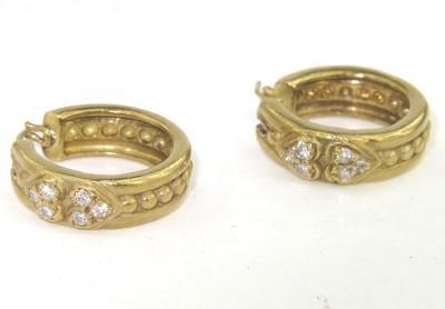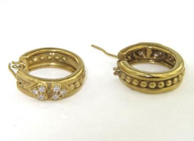 Judith Ripka 18K Yellow Gold & Diamond Earrings The total earring's weight is 13.2 gramsThe total weight of Diamond: 0.36 cts., approximately. H color VS clarity.There are 12 diamonds on earrings.The size of earring: 20 x 20 mm. The earring is 5 mm wide and 2 mm in thickness.