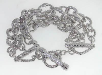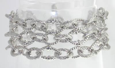 The is a beautiful Judith Ripka Silver Bracelet. The total bracelet's weight is 54.4grams. The bracelet is 7.5" long. The size of the bracelet is 25 mm in wide. This is a beautiful bracelet!