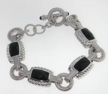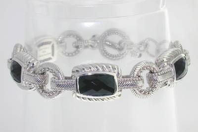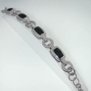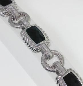 The is a beautiful Judith Ripka Silver Onyx Bracelet. The total bracelet's weight is 39.4 grams. The bracelet is 7.75" long. Size of onyx: 11 x 7 mm. This is a beautiful bracelet!