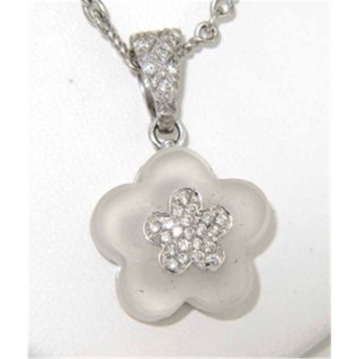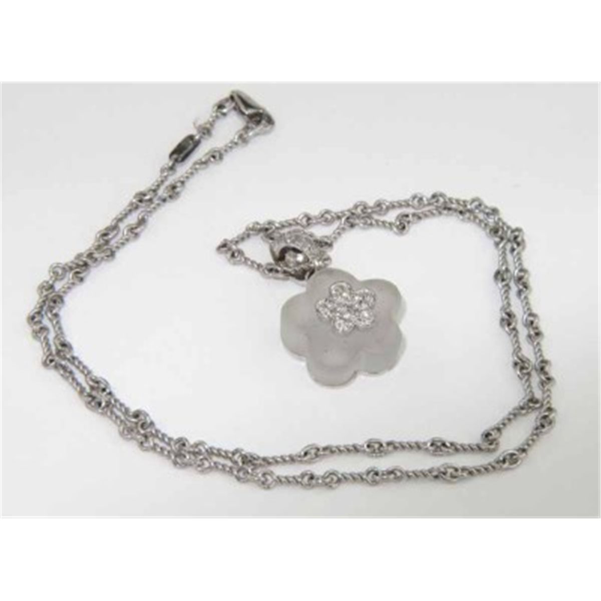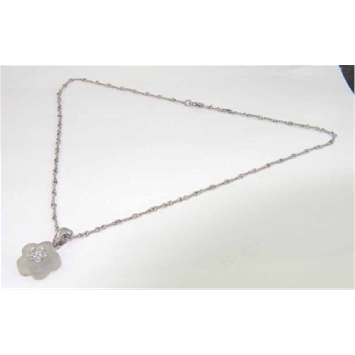 Judith Ripka 18K/14K White Gold, Diamond Crystal Necklace Necklace's Weight : 12.5 grams. The total weight of diamond is 0.15 ct. approximately H color SI clarity. The length of necklace is 17.75" long The size of pendant is 16 x 27 mm and 8 mm thick.