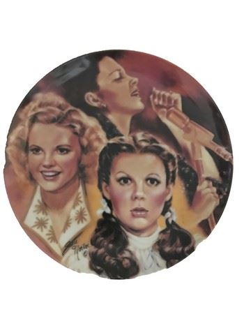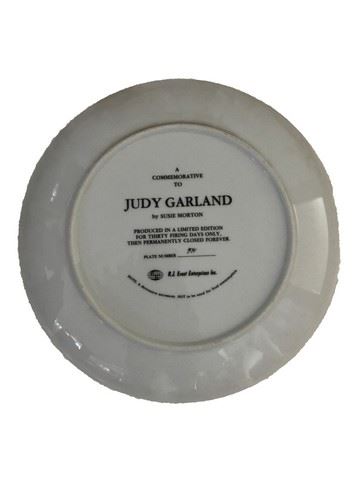 A limited edition collectible plate featuring Judy Garland by Susie Morton. This plate was produced in a limited edition for 30 firing days only then permanently closed forever. The plate number is 591. From R.J. Ernst enterprises Inc. features three pictures of Judy Garland from three of her iconic performances.