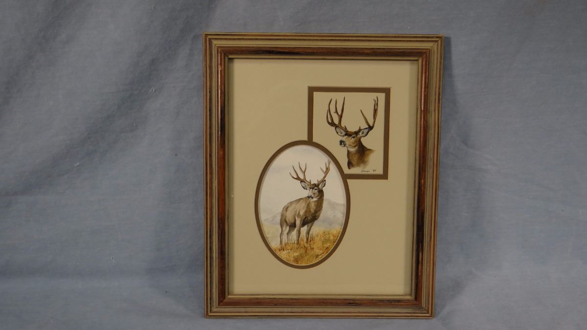 Judy Kougl watercolor, mule deer buck, 4" x 6"