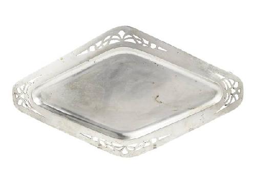 Silver, 381 g. Lozenge form, pierced decoration on the rim. Marked: Vienna, circa 1900, Lippa & Co. Neuwirth: II/28. Size: 41 x 24 cm