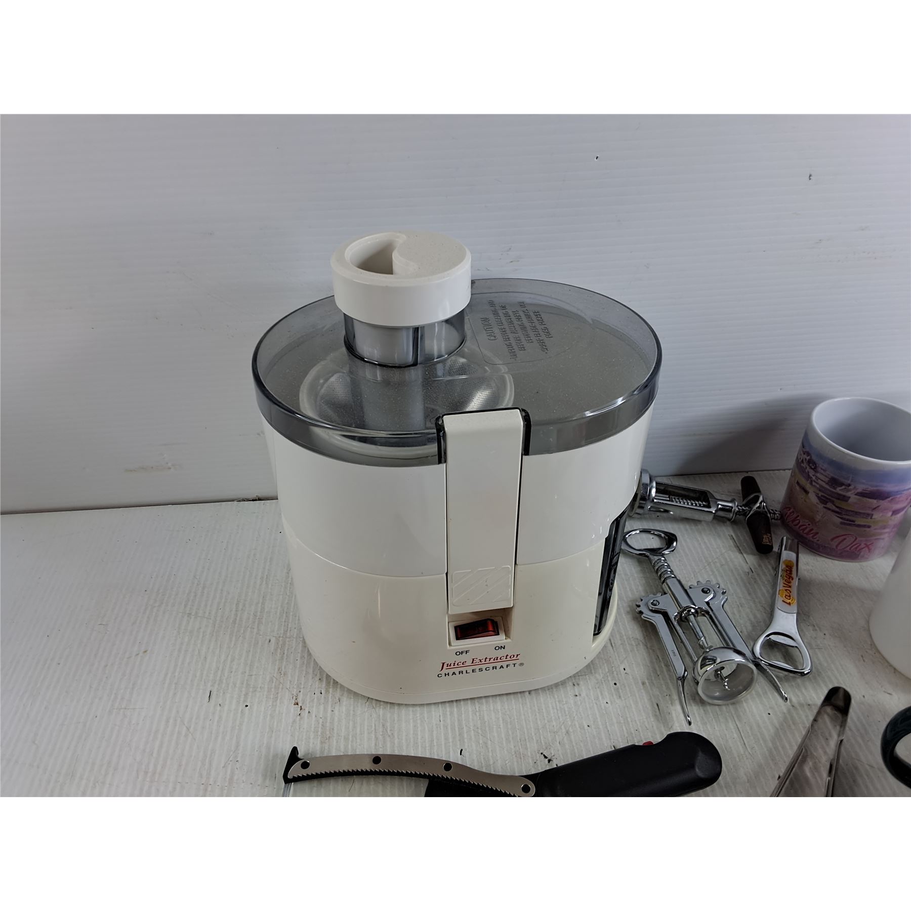 Juice Extractor - Powers On, As Is, Wine & Glass Bottle Openers, Ceramic Mugs, Olive Picks, Misc