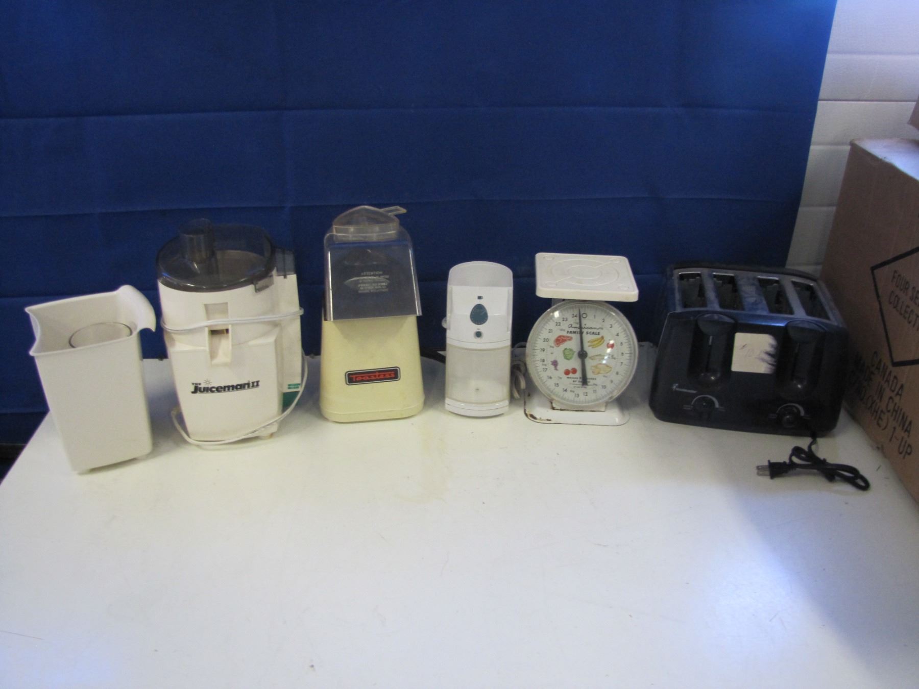 Juicer, popcorn maker, portion scale, toaster