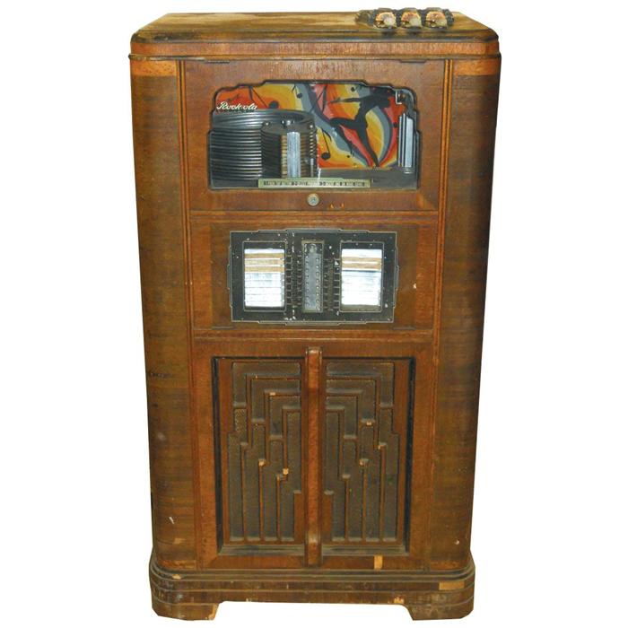 Jukebox, Rockola Series B-RM-16 in orig cond w/some veneer issues, appears complete, Rare early machine, a great restoration prospect.