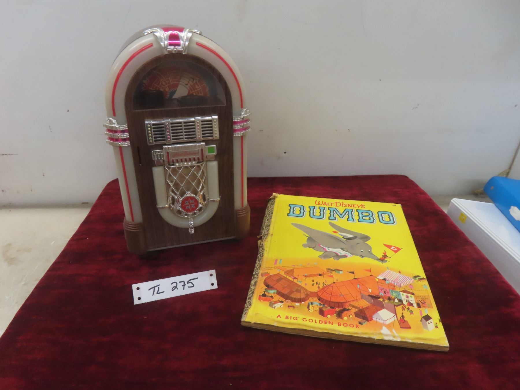 Jukebox-Style Radio Cassette Player (Not Working) and Disney Dumbo Hardcover Book (Rough Condition)