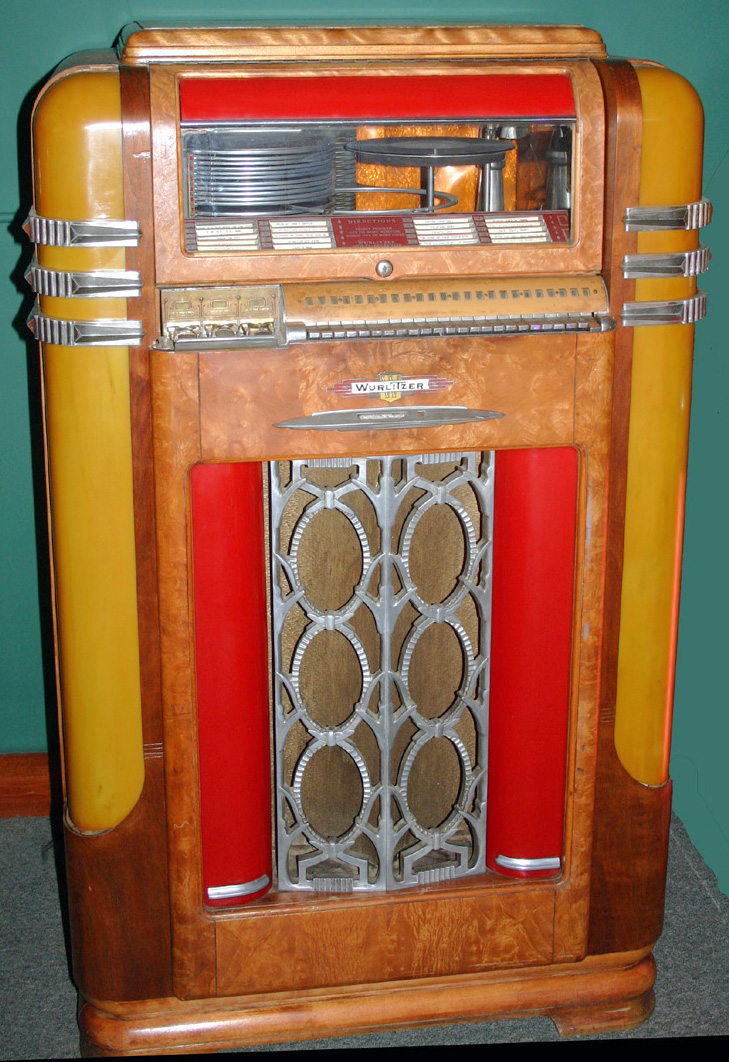 Nice machine with beautiful wood. Complete mechanically. Plays.