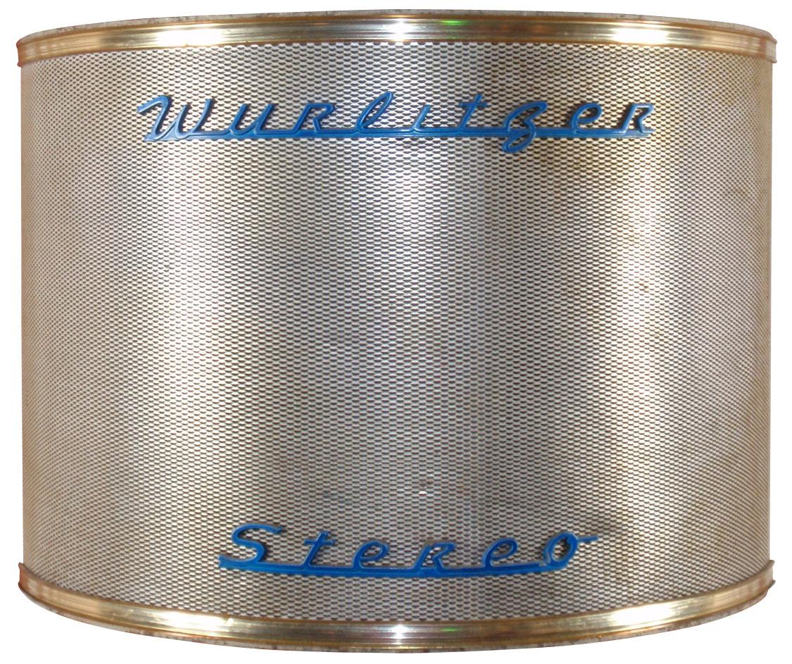 Jukebox speaker, Wurlitzer Stereo speaker w/rounded front, metal grill, VG cond, 12"H x 17"W.