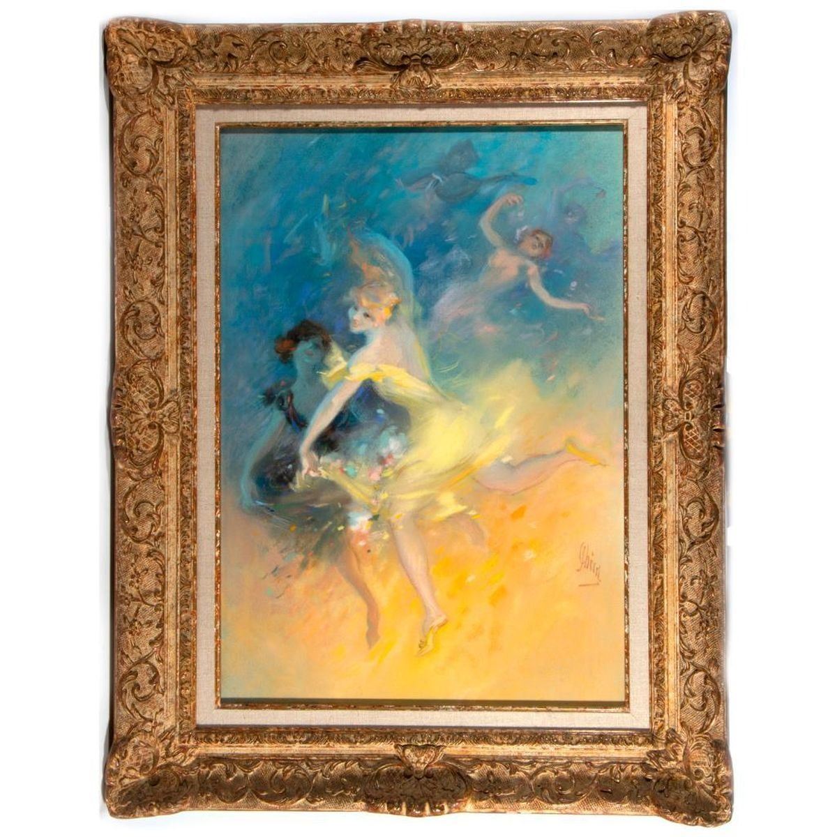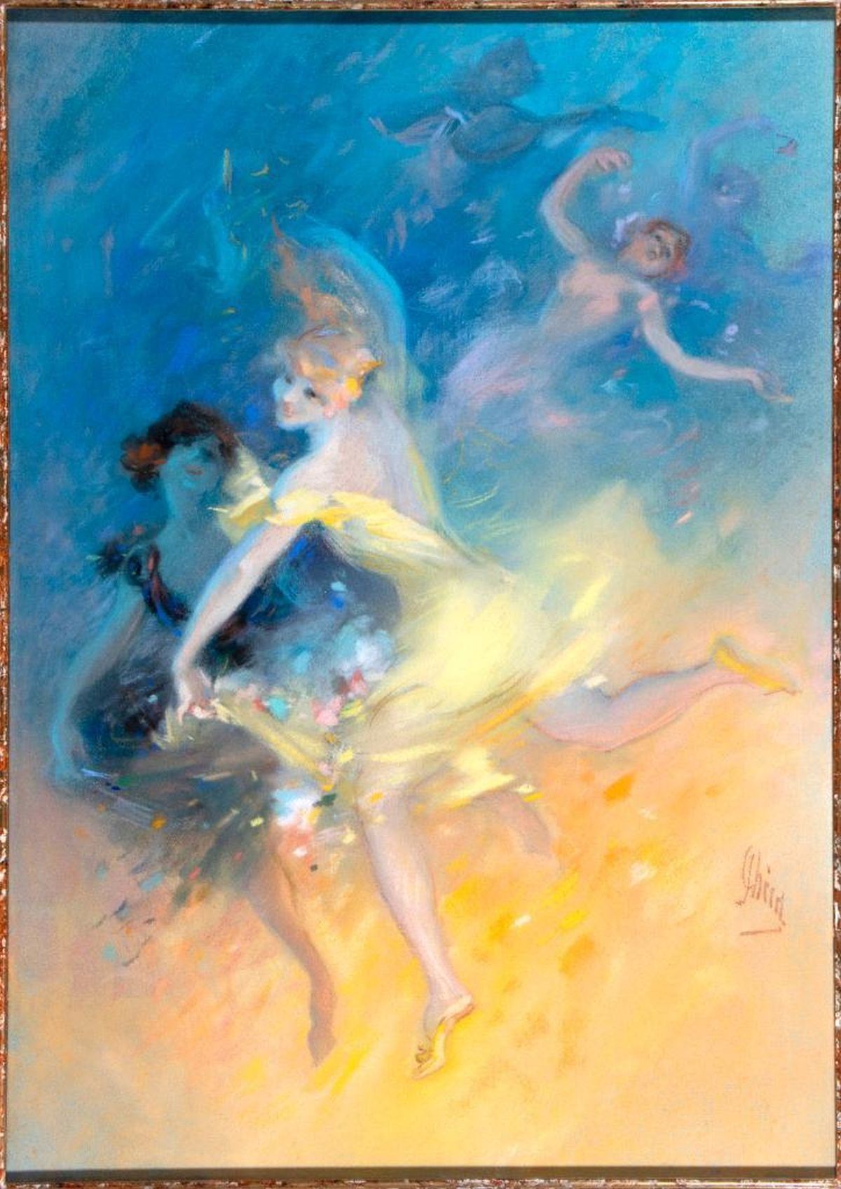 Jules CHERET (1836-1932). Title: Danseuses. Medium:Pastel on canvas. Signed: Lower right. Size:25 5/8" x 17 3/4". Frame Size: 34 1/2" x 26 1/4". Provenance: Christie's Paris, 05/21/2008, Lot174, Sales Price $24,710. (includes auction fee to buyer). Francisco Badia, Paris. (Source: askArt.com)