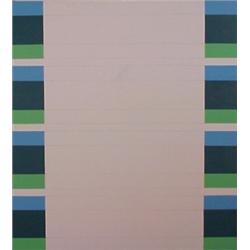 GREEN & BLUE, oil painting on canvas, 44 x 40", signed on verso, some surface smudging, small natural canvas flaw painted over by the artist. $1500/2500