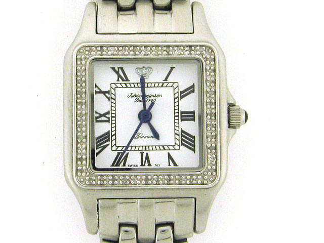This is a Jules Jurgensen 5232LW with the following features: Brushed and Polished Stainless Steel Case and bracelet; Hidden deployment clasp (butterfly buckle); Base metal bezel with diamond accent (44 diamonds - 0.25 ct)