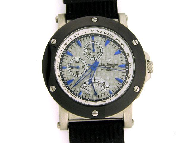 This is a Jules Jurgensen Men's watch with the following features: Stainless steel; Analog display; 42 mm case diameter; Rubber band; Black dial; Buckle clasp; Quartz movement; and Water resistant.