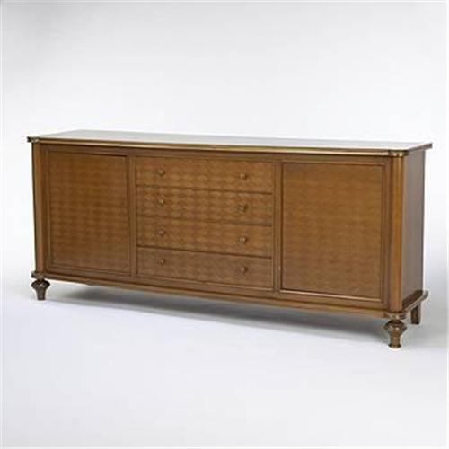 Jules Leleu<BR>sideboard, model #4531<BR>France, 1938<BR>oak, brass<BR>86"w x 22"d x 37.5"h<BR>Signed and dated with Leleu paper label to interior.<BR>Literature: Jules et Andre Leleu, Jutheau, ppg. 117, 140 illustrate similar examples<BR>Provenance: Private collection, Chicago<BR><BR><BR><BR>