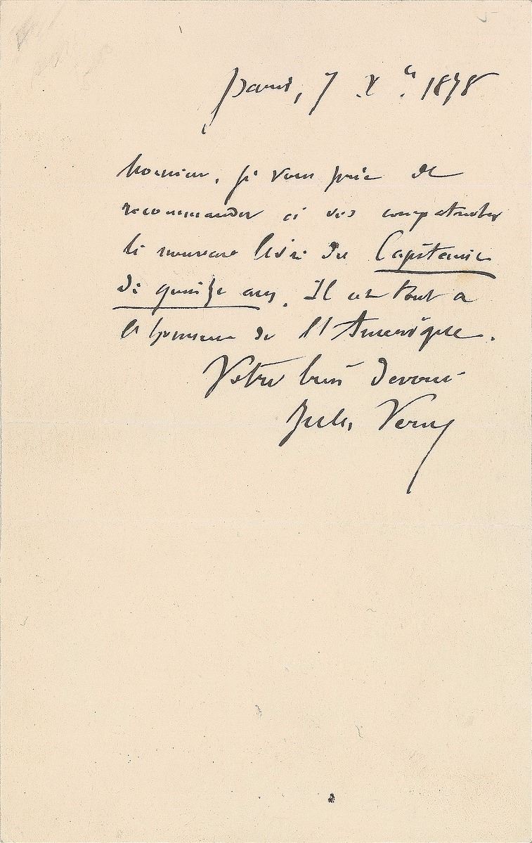 Untranslated ALS in French, one page, 4.25 x 6.75, October 7, 1898. In fine condition. An appealing, boldly penned example.