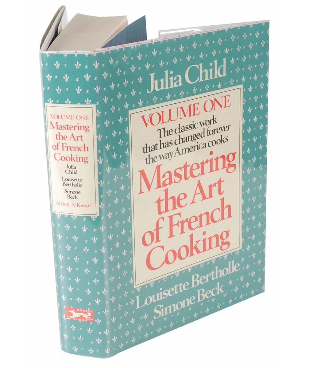 Signed book: Mastering the Art of French Cooking: Volume I. NY: Alfred A. Knopf, 2000. Hardcover with dust jacket, 7.25 x 10.25, 684 pages. Signed in black felt tip on a bookplate affixed to the second free end page, “Bon Appetit! Julia Child.” Autographic condition: fine. Book condition: NF/VG+.