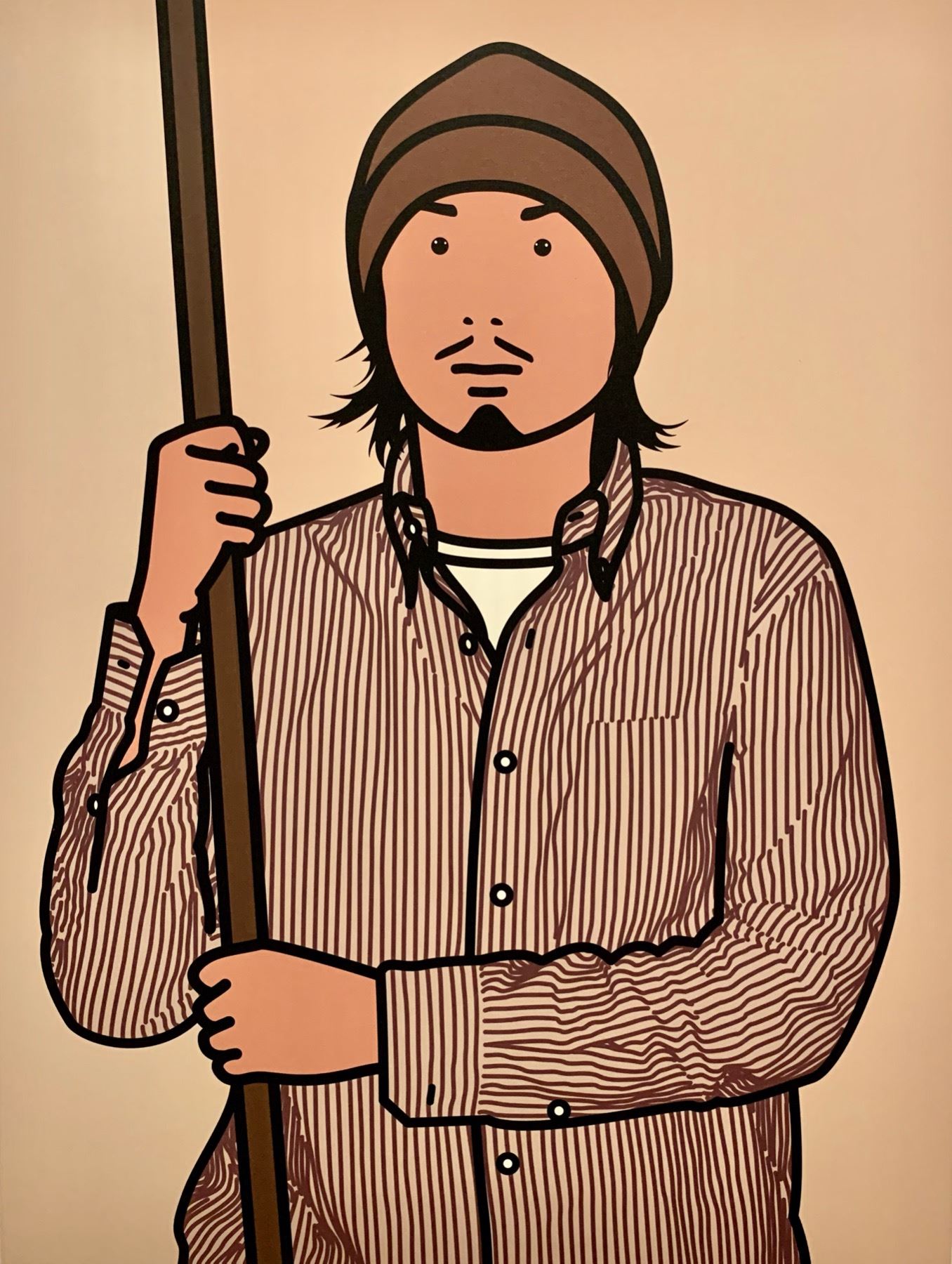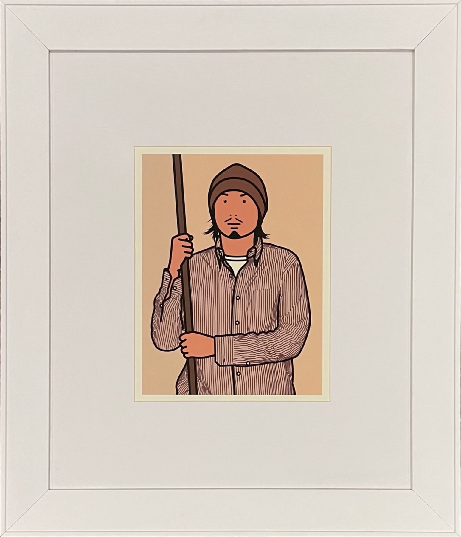 Julian Opie (1958-) Original color lithograph, from the folio "26 Portraits" titled "Hirofumi with staff" from 2005. Limited edition AP XXXVII/L, printed in Italy, published in 2006 by Alan Cristea Gallery, London. Sheet 16.5 x 11.63, framed 28.25 x 24.25 inches. Condition: Sheet is in perfect condition, the frame is new. COA provided with copy of folio title sheet.