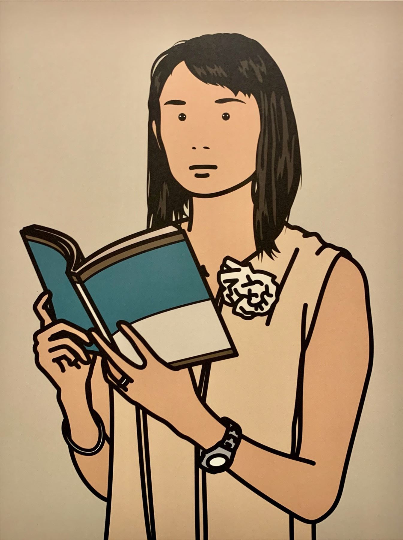 Julian Opie (1958-) Original color lithograph, from the folio "26 Portraits" titled "Hijiri with book" from 2005. Limited edition AP XXXVII/L, printed in Italy, published in 2006 by Alan Cristea Gallery, London. Sheet 16.5 x 11.63, framed 28.25 x 24.25 inches. Condition: Sheet is in perfect condition, the frame is new. COA provided with copy of title sheet.