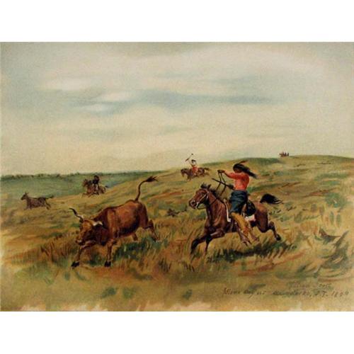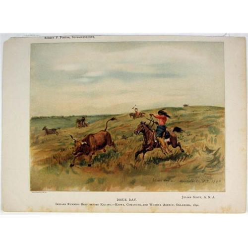 Julian Scott (1846-1901) (New Jersey) Chromolithograph, "Issue Day", image size 7" x 9", Sackett & Wilhelms Litho Co., New York